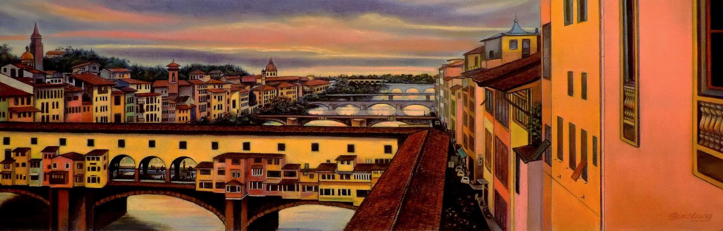 SIX BRIDGES OF FLORENCE 11.5 X 36 Pastel
